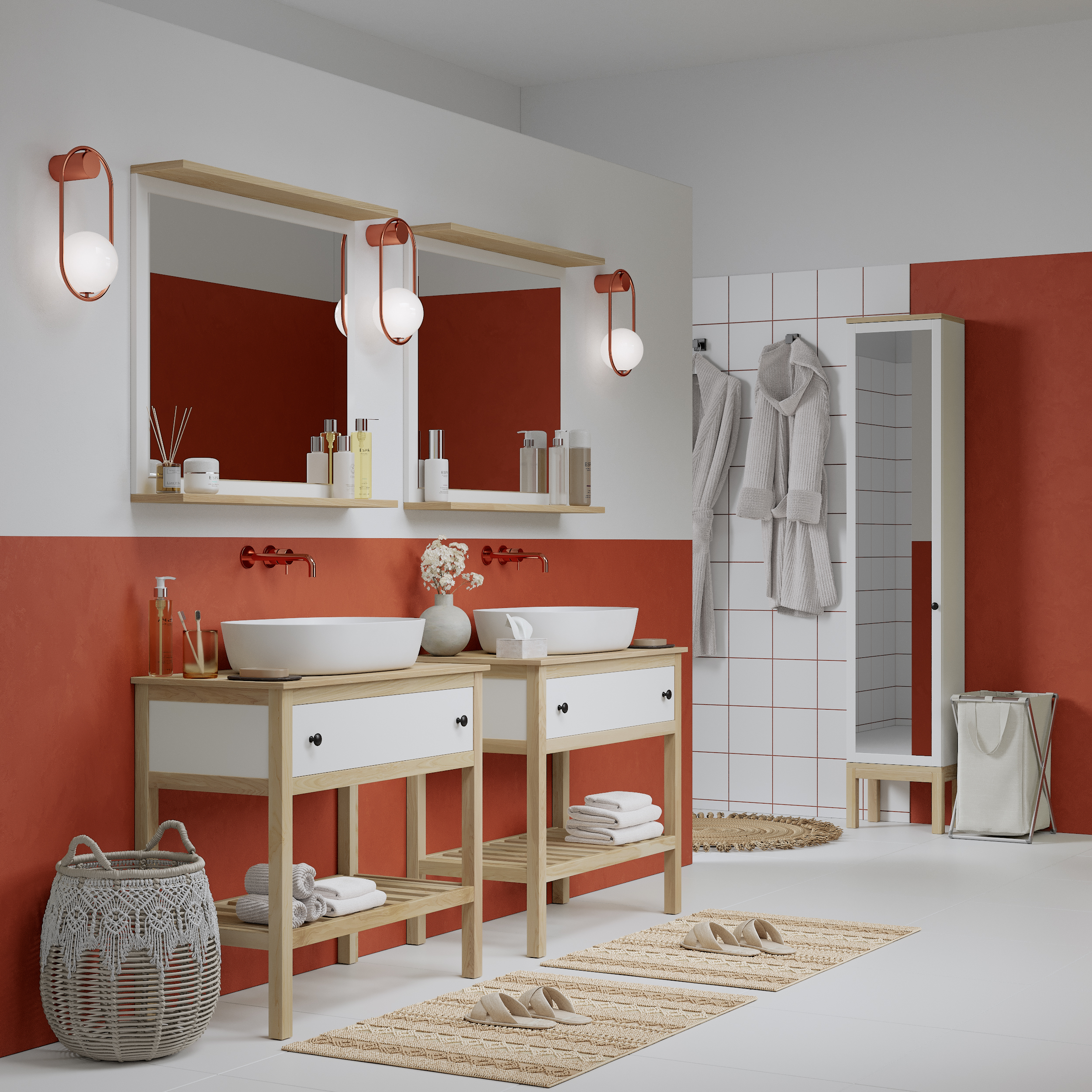 Сочетание натурального ясеня и белой эмали стало очень популярным в интерьерах двадцатых годов. Серия мебели «Скандинавия» выполнена в традиционном стиле на каркасной основе из массива Ясеня. Фасады изготовлены из МДФ с лакокрасочным покрытием. Мебель вписывается в любой современный интерьер, выглядит модно и легко. Большая вариативность изделий позволяет наполнить помещения разных объемов. Применяемые материалы и фурнитура будут служить долгие годы даже в условиях влажности ванной комнаты. Каждое изделие оптимально и удобно в эксплуатации.
