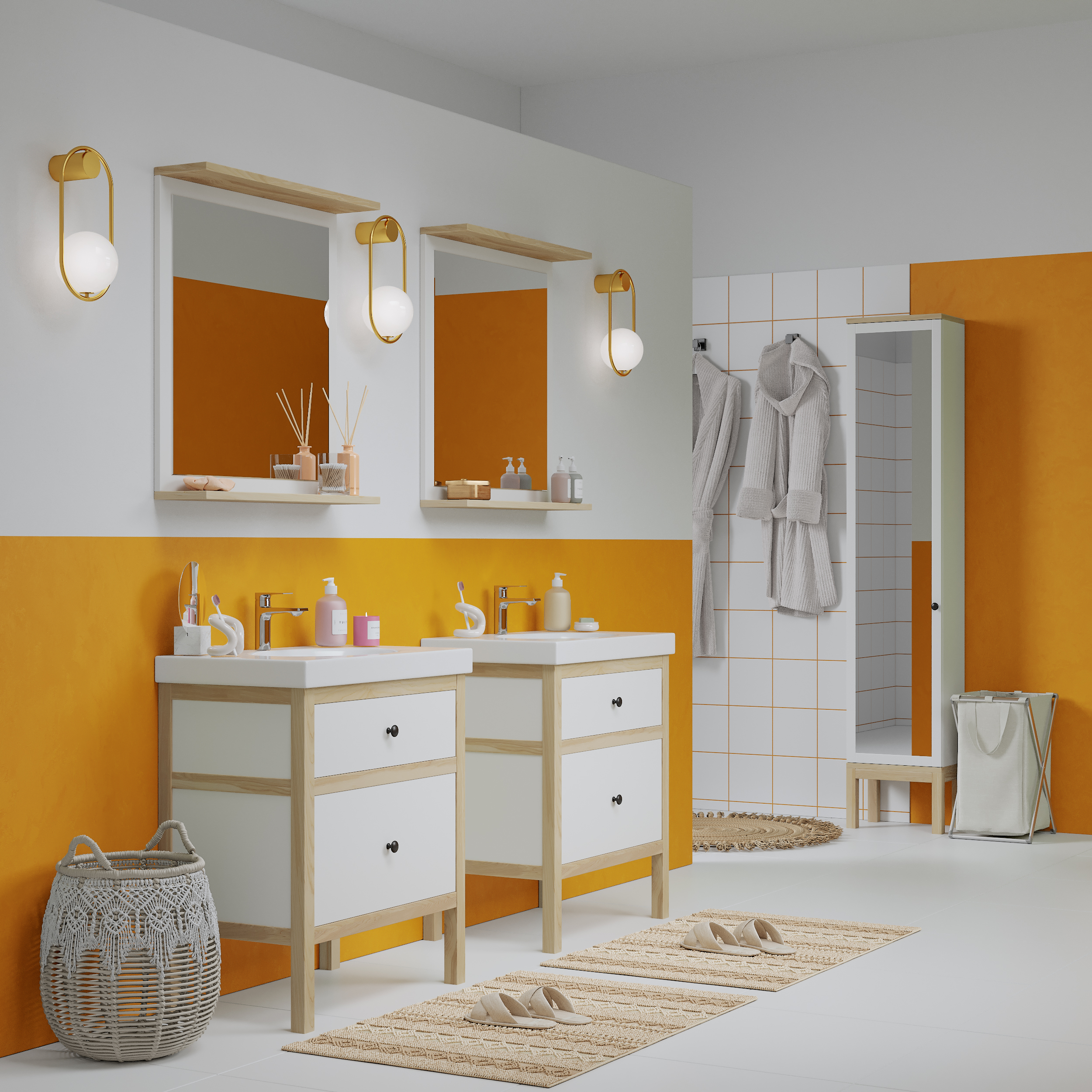 Сочетание натурального ясеня и белой эмали стало очень популярным в интерьерах двадцатых годов. Серия мебели «Скандинавия» выполнена в традиционном стиле на каркасной основе из массива Ясеня. Фасады изготовлены из МДФ с лакокрасочным покрытием. Мебель вписывается в любой современный интерьер, выглядит модно и легко. Большая вариативность изделий позволяет наполнить помещения разных объемов. Применяемые материалы и фурнитура будут служить долгие годы даже в условиях влажности ванной комнаты. Каждое изделие оптимально и удобно в эксплуатации.