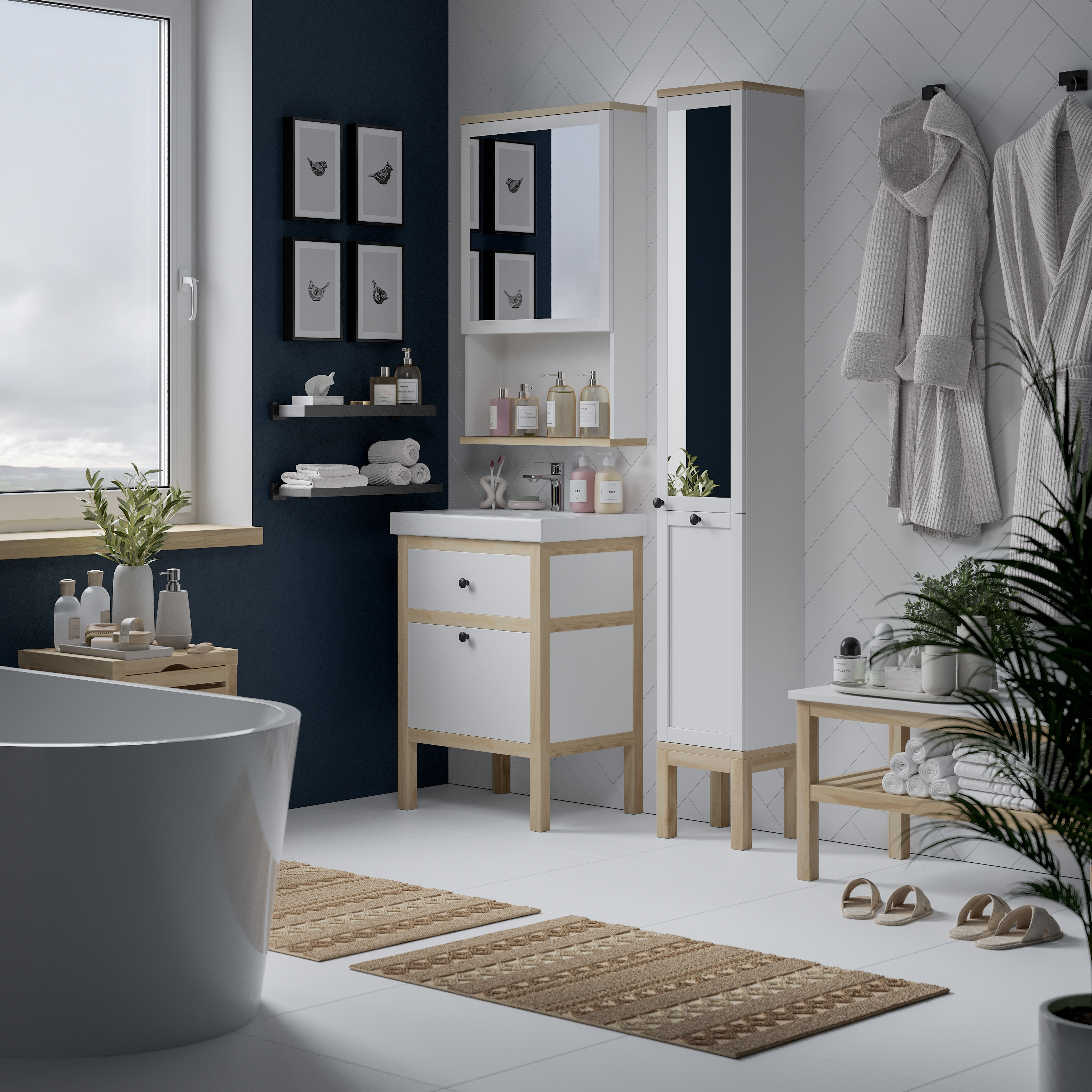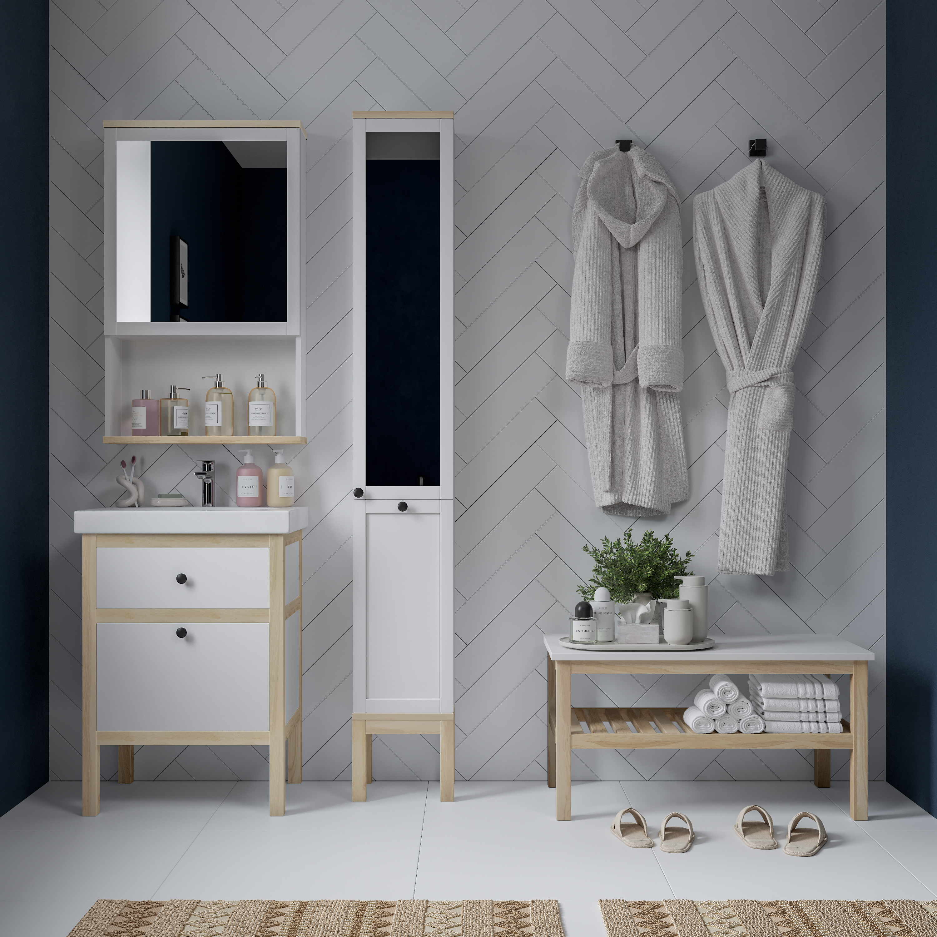 Сочетание натурального ясеня и белой эмали стало очень популярным в интерьерах двадцатых годов. Серия мебели «Скандинавия» выполнена в традиционном стиле на каркасной основе из массива Ясеня. Фасады изготовлены из МДФ с лакокрасочным покрытием. Мебель вписывается в любой современный интерьер, выглядит модно и легко. Большая вариативность изделий позволяет наполнить помещения разных объемов. Применяемые материалы и фурнитура будут служить долгие годы даже в условиях влажности ванной комнаты. Каждое изделие оптимально и удобно в эксплуатации.