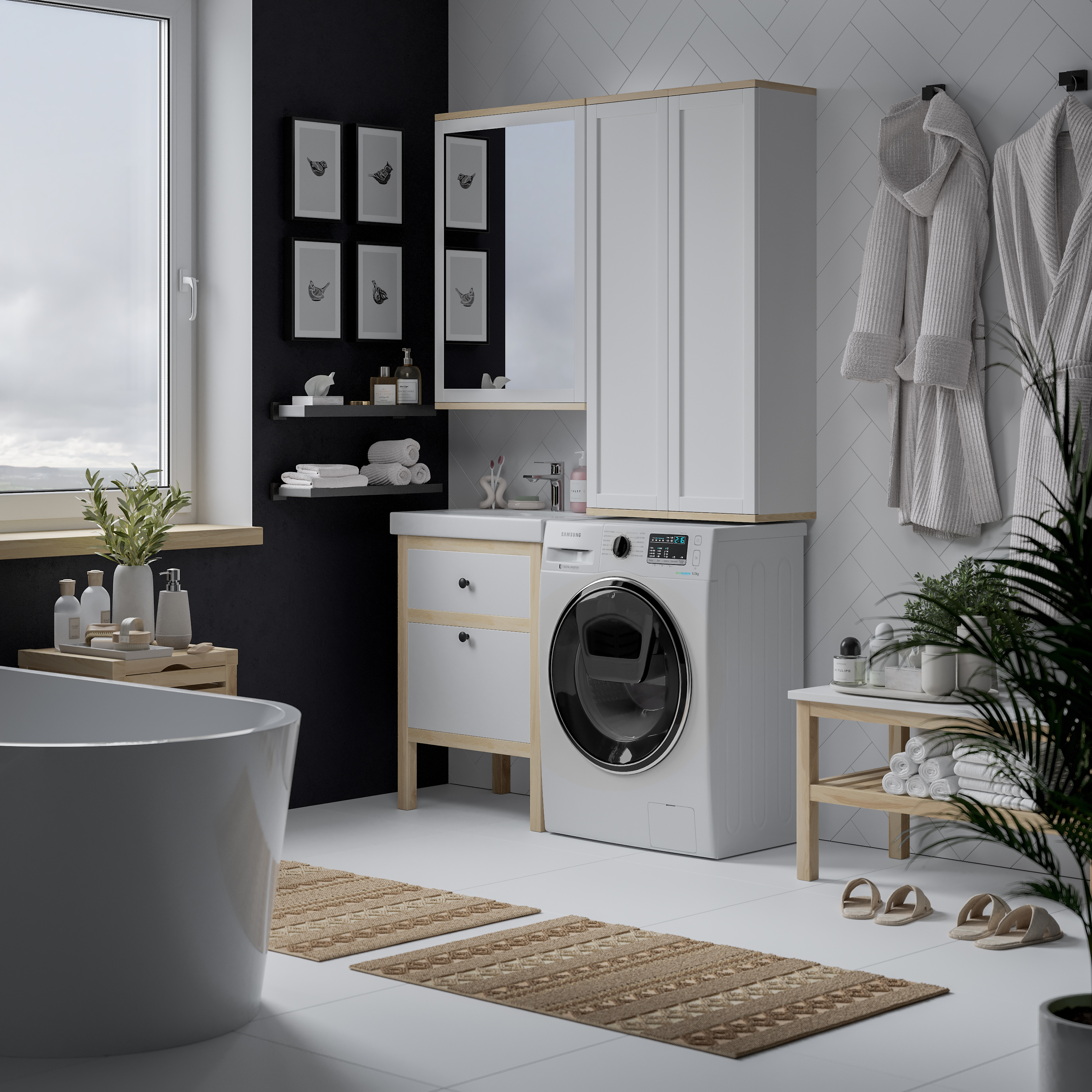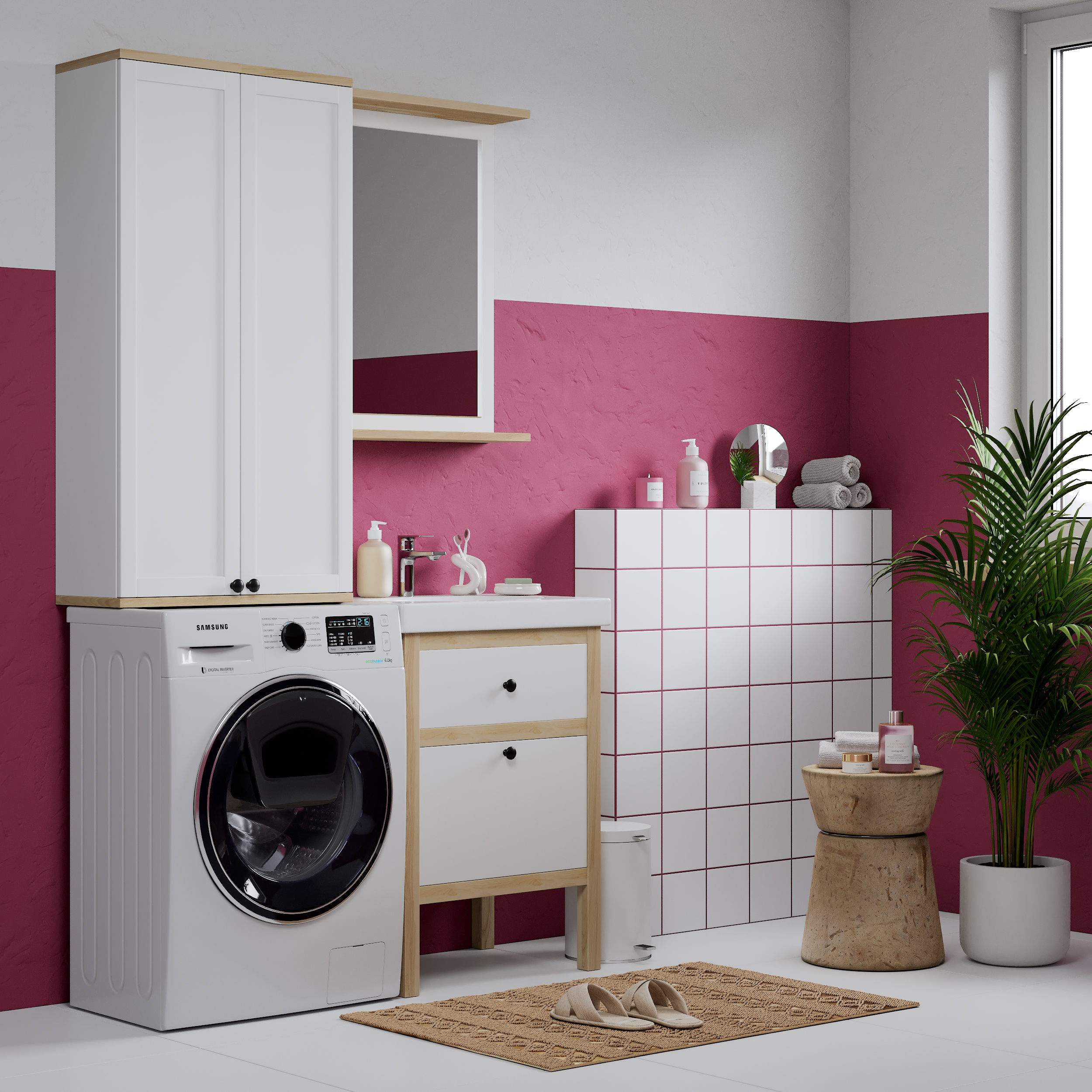 Шкаф закрытый из эмали с полкой из массива ясеня средний